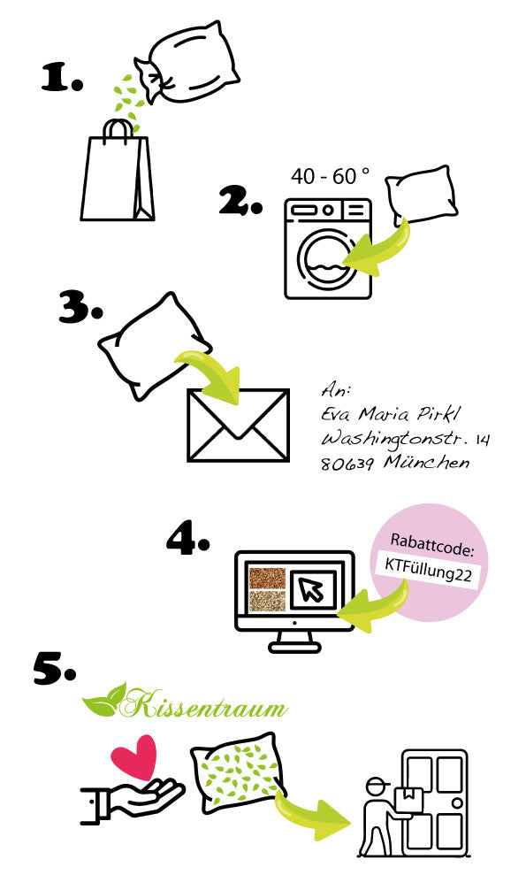 4. Online eine Nachfüllung für Ihre Kissengröße bestellen mit dem Rabattcode KTFüllung22